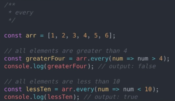 El método every() verifica si todos los elementos en el arreglo pasan la prueba implementada por la función dada.