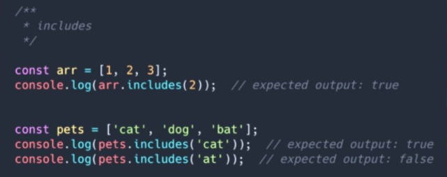 El método includes() determina si un array incluye un determinado elemento, devuelve true o false según corresponda.